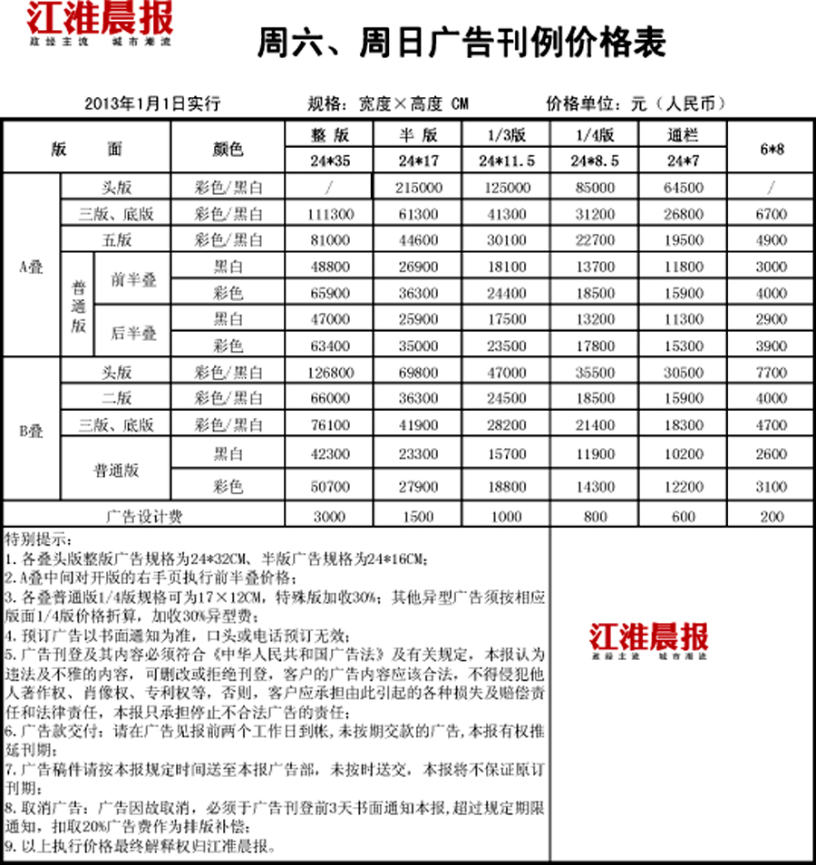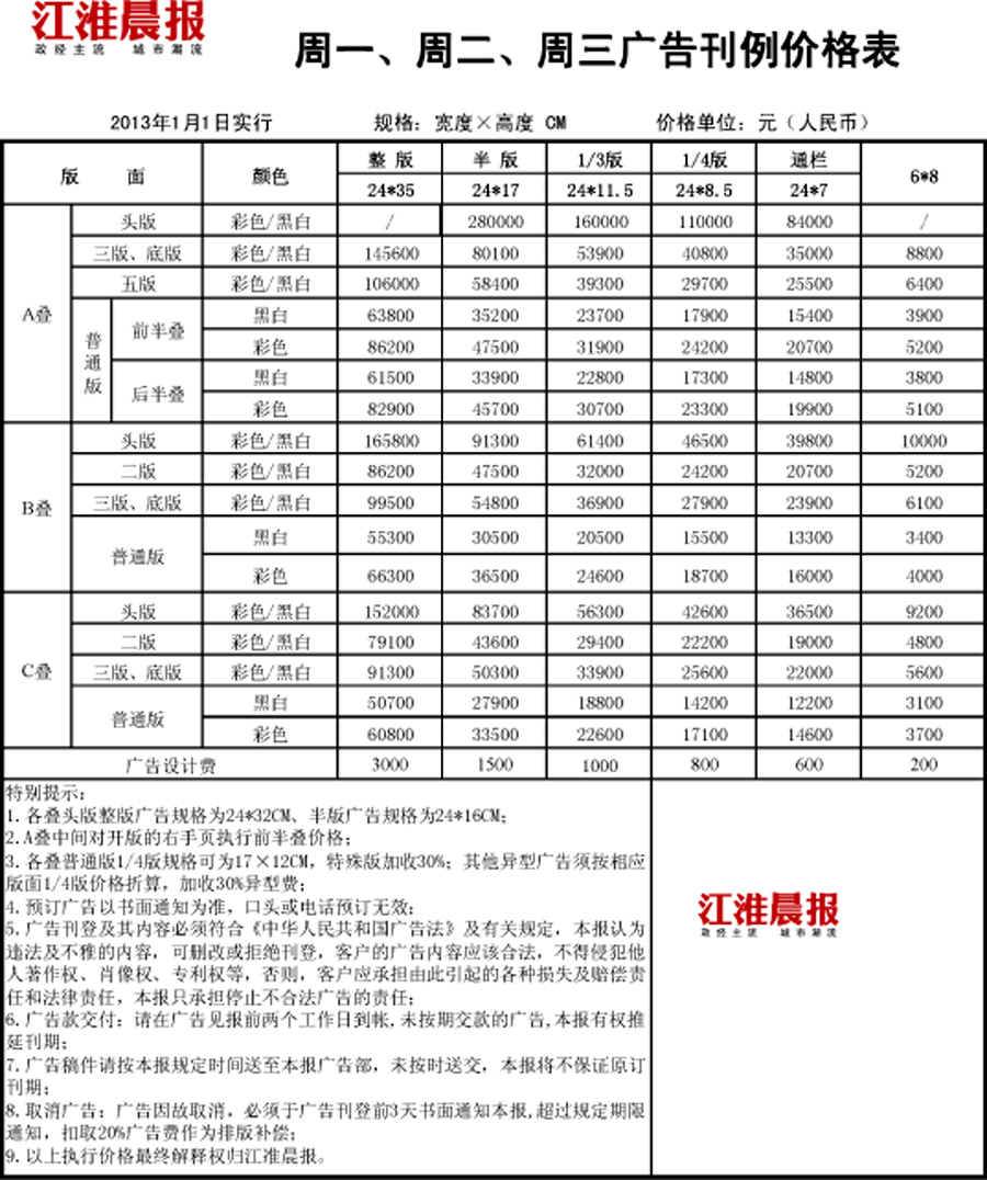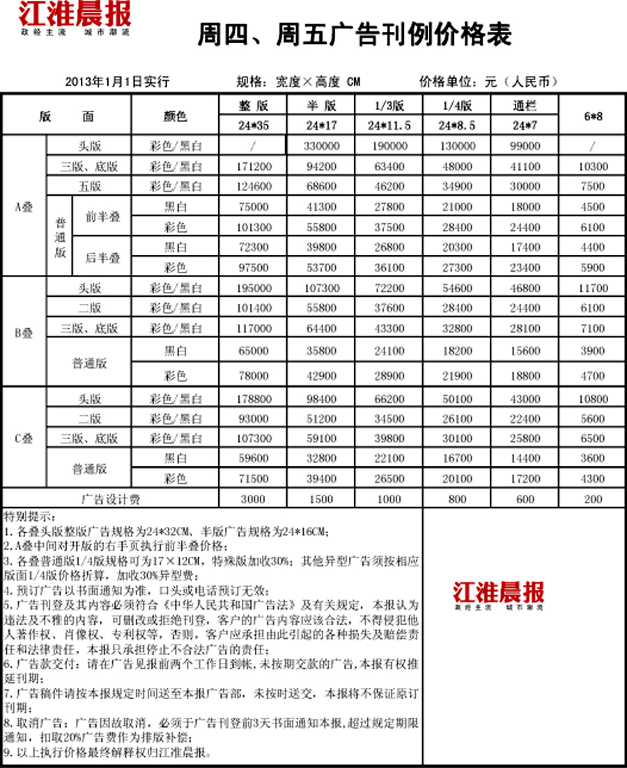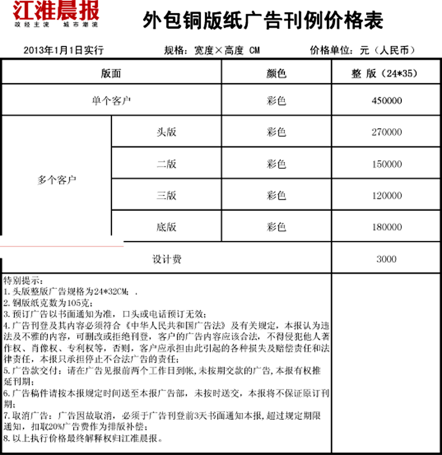 江淮晨报广告价格