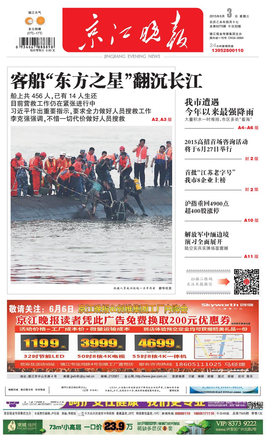 《京江晚报》创刊于1998年1月1日,现为四开24版,彩色印刷。综合性门户网站--金山网,于2002年年底开通,目前设置频道30个,日点击率已突破7万次·近几年来,《镇江日报》,《京江晚报》在省级以上好新闻评选中频创佳绩,其中《激活细胞应对入世》,《帐本上的小康之路》先后荣获第五届,第六届江苏新闻奖。经营管理继2003年获"江苏省报业先进经营管理工作者"称号后,又于2004年获"全国先进经营管理工作者"称号。