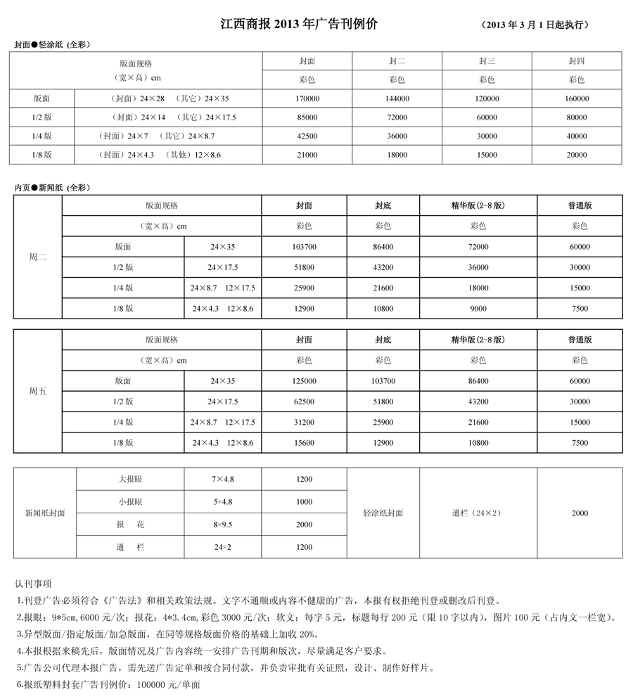 江西商报广告价格
