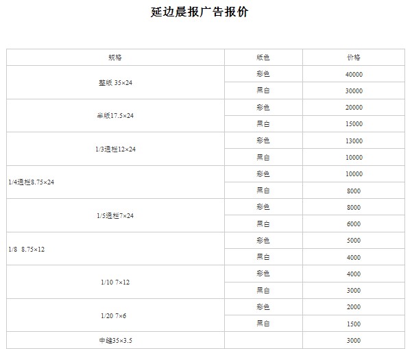 延边晨报广告价格
