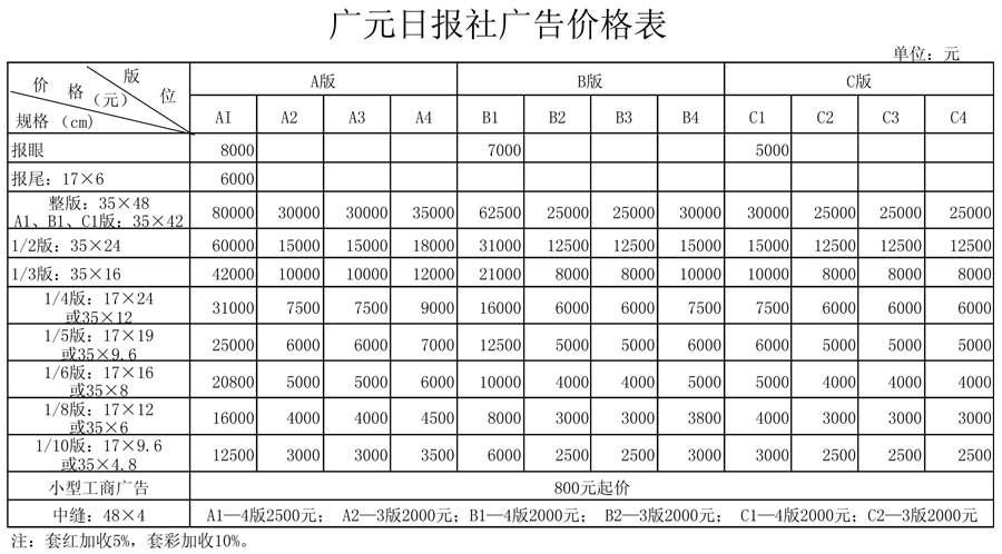 广元日报广告价格